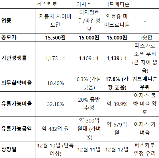 단점: 유통가능금액(약 679억 원)이 셋 중 가장 무거워, 상장일 수급이 꼬이면 상승 탄력이 둔화될 수 있습니다.