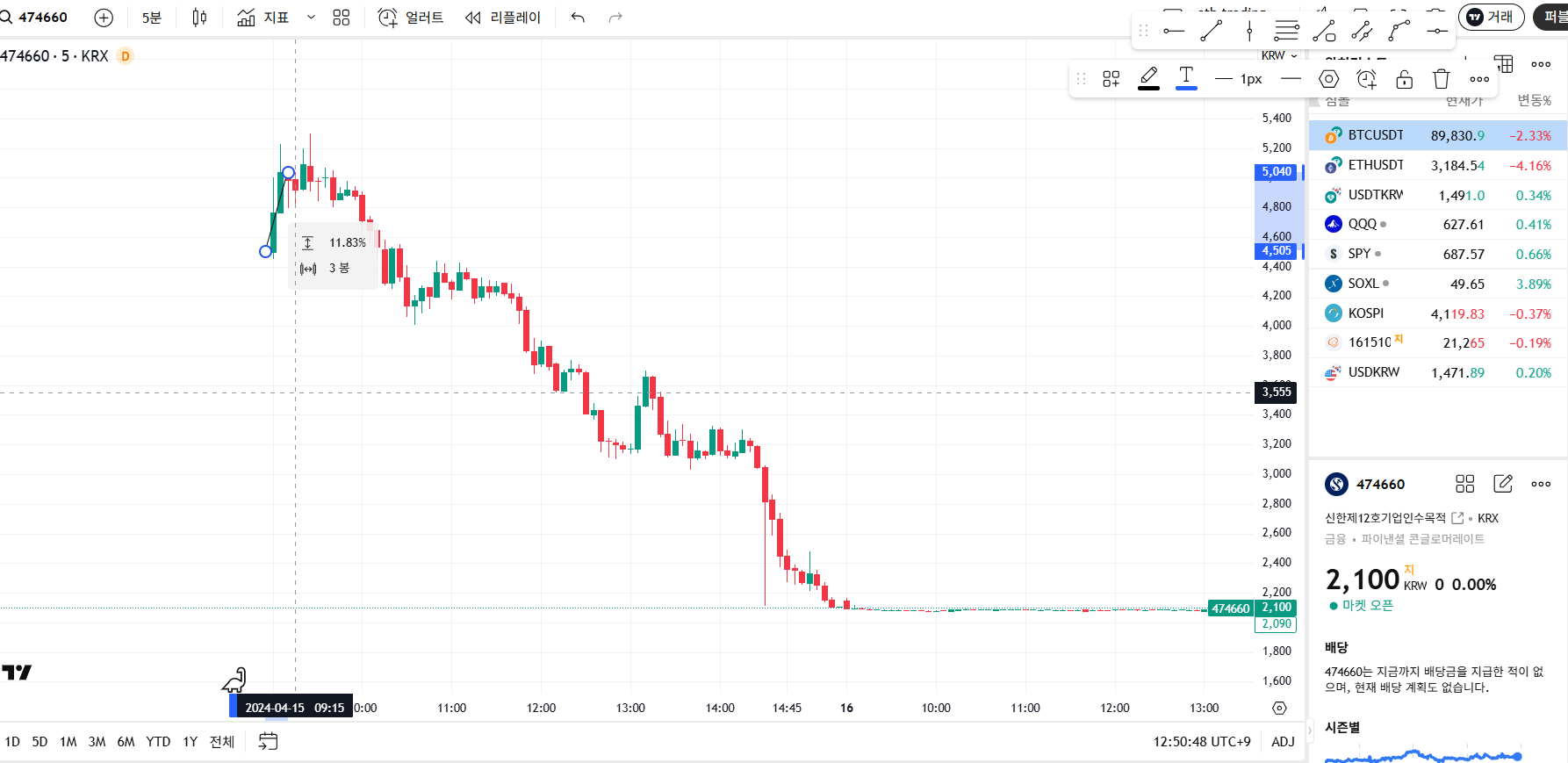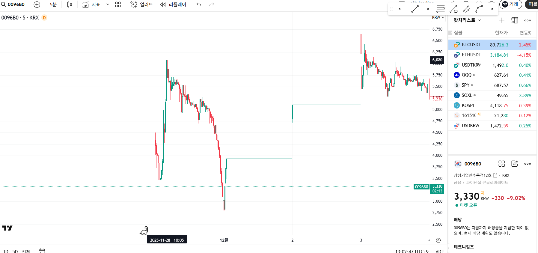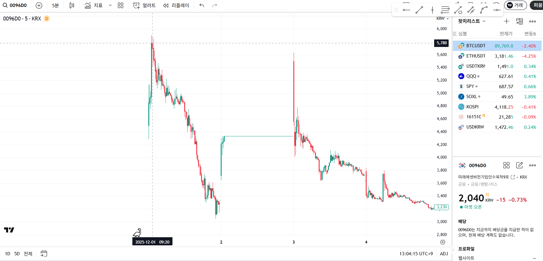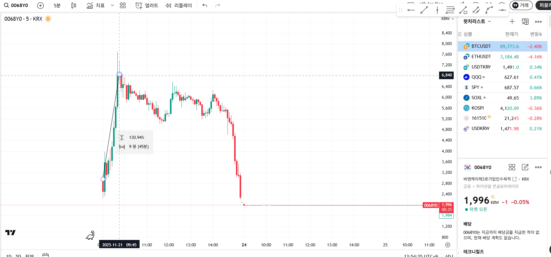 **** 아래는 2024년 2025년의 스팩주 상장후 5분봉차트이다. 과거의 정확한 가격흐름은 AI한테 분석을 맡기니 오류가 많아 어쩔수 없이 수동으로 트레이딩뷰 차트를 직접 첨부한다.
